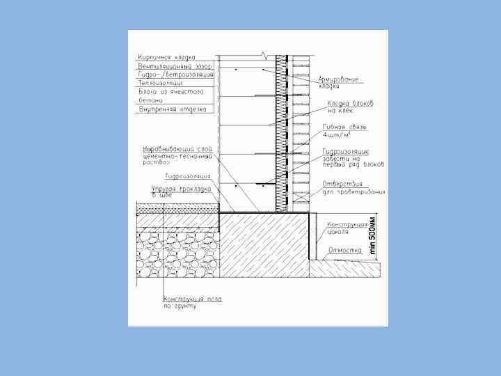 Цоколь многослойной стены из газобетона