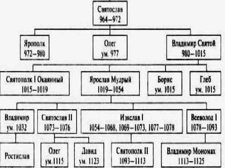 1. Междоусобица сыновей и внуков Ярослава Мудрого Княжили в таком порядке: По мере смены • старший брат главного князя все • младшие братья по порядку • сыновья старшего брата (по старшинству) прочие переезжали • сыновья следующих братьев (по старшинству) по старшинству • внуки, правнуки в той же последовательности из города в город Порядок этот помогал сохранять единство страны, но был неудобен в силу постоянных переездов князей с дружинами из города в город 2/16/2018