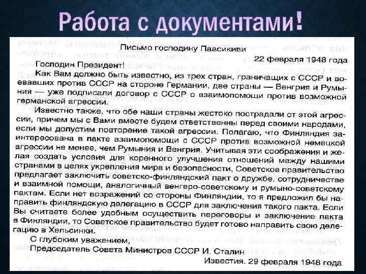 Швеция после войны сохранила свой нейтралитет. Финляндия- вынуждена координировать послевоенную политику с СССР (подписала с СССР Договор о дружбе, сотрудничестве и взаимной помощи). Дания, Норвегия и Исландия вступили в НАТО. (членство нём ограничивалось лишь вопросами национальной безопасности). 1975 г. - в столице Финляндии Хельсинки прошло Совещания по безопасности и сотрудничеству в Европе с участием 35 стран, в том числе США и Канады.