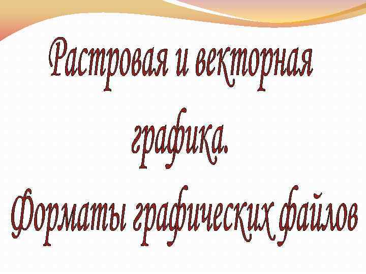 Форматы графических файлов Растровые форматы BMP GIF PNG JPEG TIFF … Векторные форматы WMF ODG CDR FLA FRM …