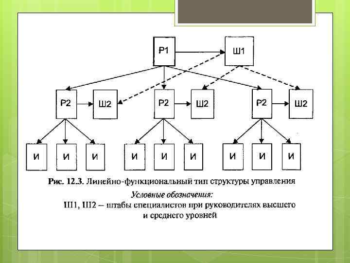 Линейная организационная структура организует принципы единоначалия и централизма, предусматривает выполнение одним руководителем всех функций управления, подчинение ему всех нижестоящих подразделений.