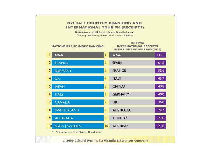 Anholt GFK Ropar Nation Brand Index 2008 2009 2010 Niemcy USA Francja Niemcy Wielk. Bryt. Niemcy Francja Kanada Wielk. Bryt. Japonia Włochy Kanada USA Kanada Włochy Szwajcaria Australia Szwecja Hiszp. Szwecja