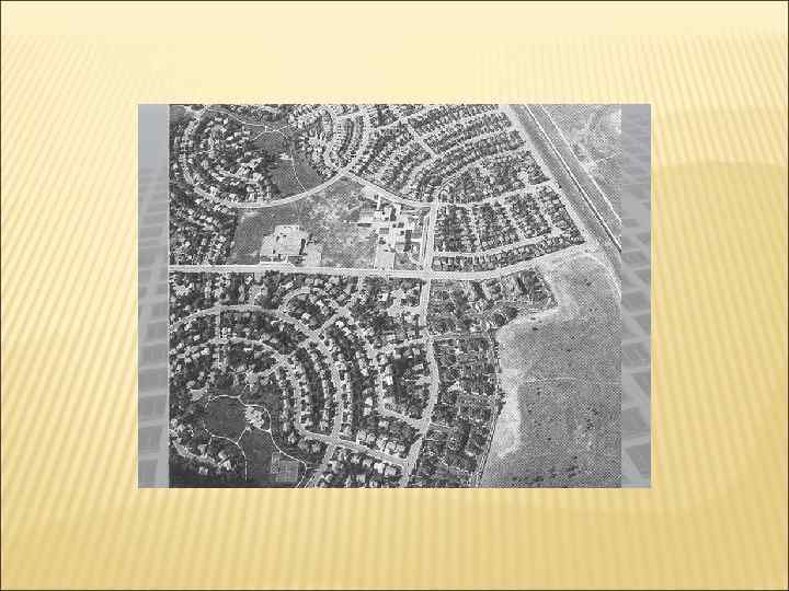 ОСНОВНЫЕ ПРИНЦИПЫ КОНЦЕПЦИЙ МИКРОРАЙОНОВ Структурные единицы. г. Рэдберн: К. Стейн и С. Райт, 1928 г. Поселок разделен на три структурные единицы с основными видами обслуживания, которые рассчитаны на 7500 – 10000 жителей. Предусмотрен общественный центр всего поселка. УК северу от центра находится территория для размещения небольшого промышленного комплекса. В связи с экономическим кризисом была реализована лишь часть проекта. План северо-западного и юго-западного микрорайонов: 1 – здания, построенные к 1929 г. ; 2 – будущая застройка