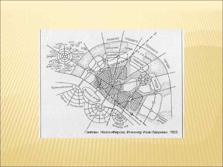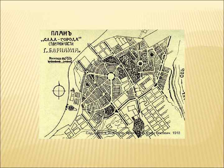 Истоки современного градостроительства А) Э. Говард. Город-сад Б) А) Вокруг города размещены сельскохозяйственные территории, площадь которых впятеро превышает площадь самого города. Б) Фрагмент города-сада и его центр. Жилая единица на 5000 тысяч жителей с обслуживанием и промышленностью. В обширном центральном парке диаметром 900 м размещаются главные общественные здания города.