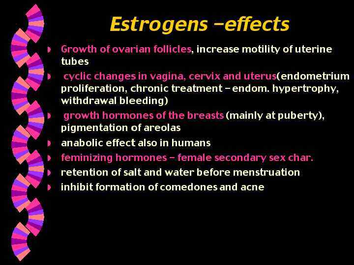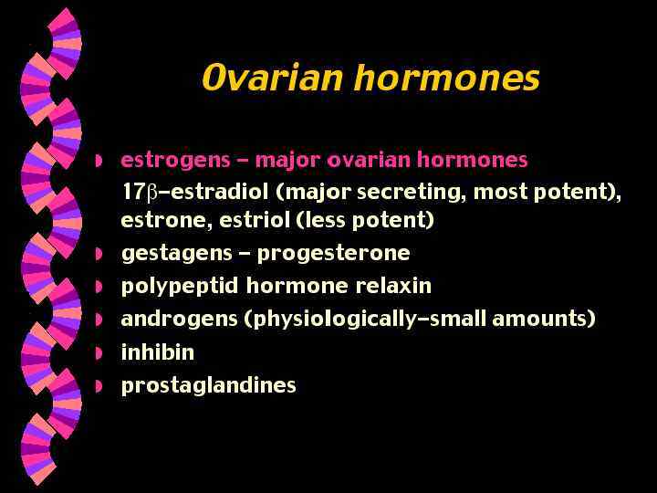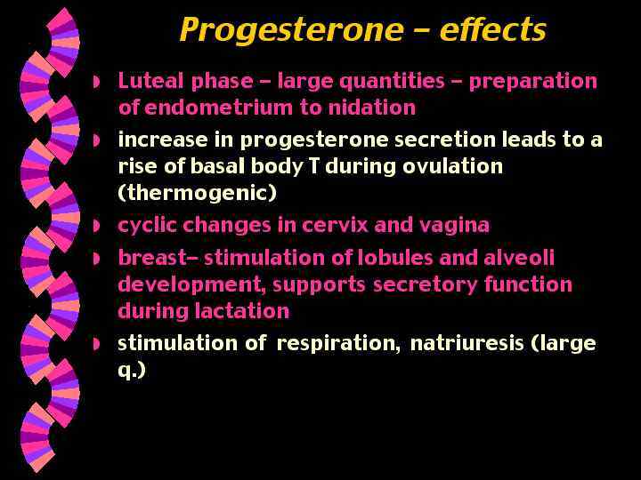 Пролактин Функции : Стимулирует выработку молока в молочных железах Регуляция выработки пролактина : пролактин – рилизинг - гормон PRH ( гипоталамус ) Фолликулостимулирующего гормона (ФСГ) Функции у женщин : Инициирует рост яйцеклеток в фолликулах яичников Увеличивает секрецию эстрогенов клетками фолликула Функции у мужчин : Инициирует производство спермы в яичках Регуляции секреции : рилизинг-фактор гипоталамуса стимулирует секрецию Ингибин ( яичники или семенники ) подавляет секрецию Лютеинизирующий гормон (ЛГ) ( ICSH ) Функции у женщин : Стимулирует овуляцию Стимулирует развитие желтого тела на месте лопнувшего фолликула Увеличивает секрецию прогестерона желтым телом