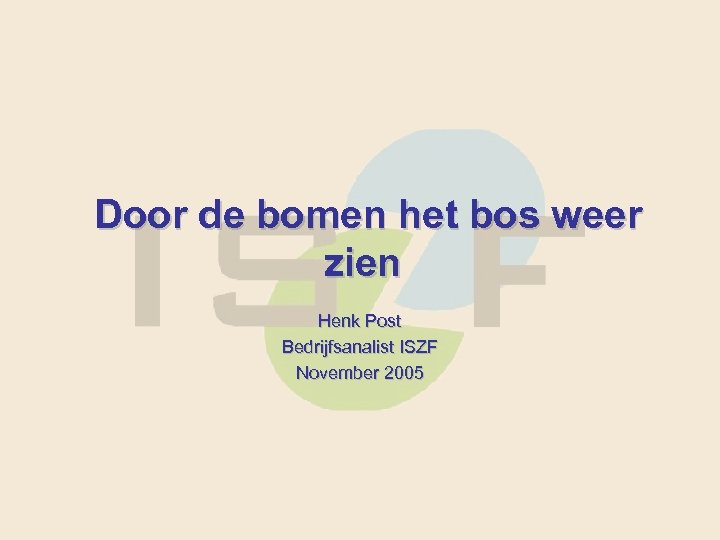 Door de bomen het bos weer zien Henk Post Bedrijfsanalist ISZF November 2005