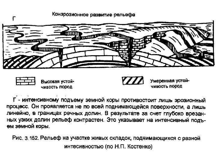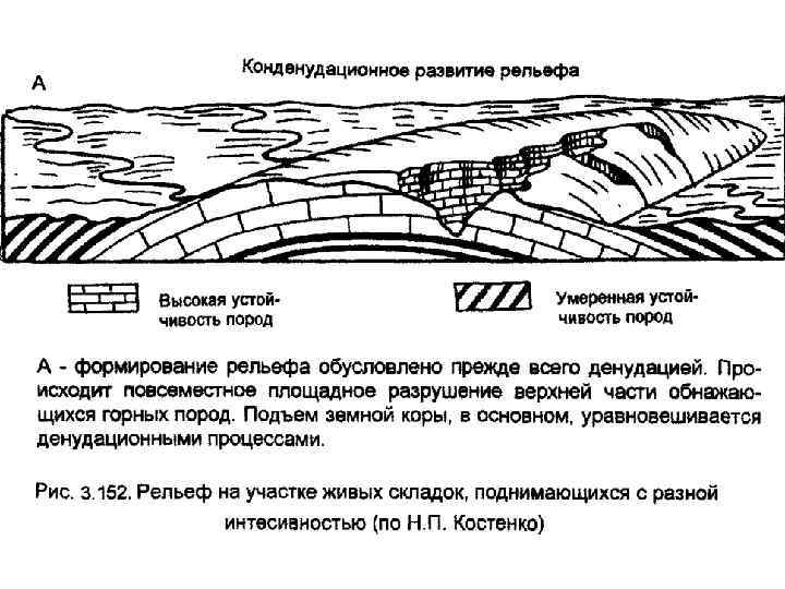Аккумулятивная равнина регионально опускается (-Т>0). t - локальный подъем антиклинальной структуры, которая в рельефе не выражена. Строение равнины в разных частях неодинаково. Мощность осадков больше в своде антиклинали. Грубообломочные отложения накапливаются в своде антиклинали, мелкообломочные на крыльях (конседиментационная структура). Первая критическая скорость тектонических движений земной коры прослеживается через изменение мощности и состава осадков.