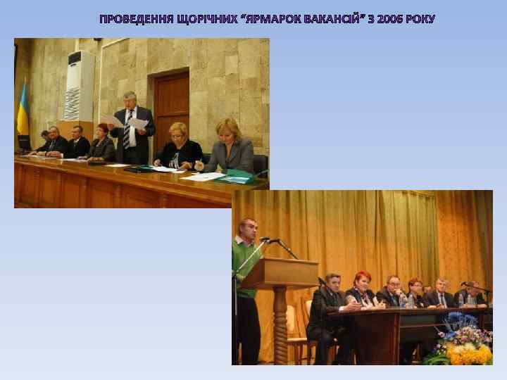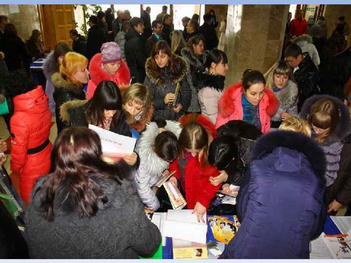 Ярмарок Рік проведення Кількість підприємств учасників Запропоновані вакантні посади технічні технологічні економічні 1 -й ярмарок 2006 59 61 75 73 2 -й ярмарок 2007 52 61 70 72 3 -й ярмарок 2008 35 38 44 40 4 -й ярмарок 2008 46 49 55 50 5 -й ярмарок 2009 43 53 67 40 6 -й ярмарок 2010 56 50 82 59 7 -й ярмарок 2011 48 56 75 69 8 -й ярмарок 2012 62 57 78 77