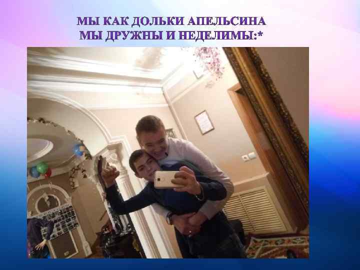 Дружба – это когда человек знает о тебе все, и все равно продолжает любить тебя. Ктото дружит с самого детства. А кто-то встречает друзей потом. Но найти хороших друзей – большая удача. Настоящим друзьям все равно сколько у тебя денег, какой ты по национальности и сколько тебе лет. Они никогда не оставят тебя в беде. Друзья всегда готовы выручить в трудную минуту, с друзьями ты можешь быть собой и вытворять всякие глупости. Настоящие друзья пожертвуют всем, чтобы тебе было хорошо и присмотрят за тобой. Друзья поймут все без лишних слов. Ты для нас самый лучший! Ромочка, мы все тебя любим! Не переживай, все будет хорошо, вместе мы со всем справимся!