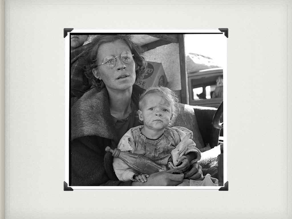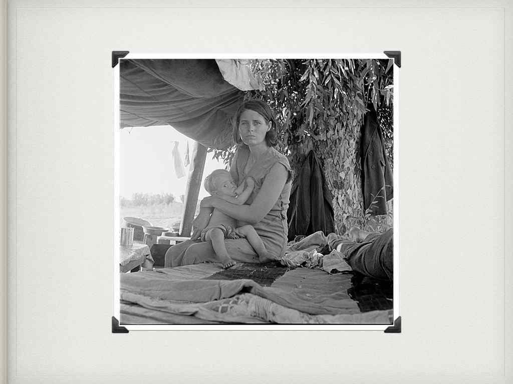 Флоренс Оуен Томпсон лицо Великой Депрессии Эта фотография на протяжении многих лет была в буквальном смысле олицетворением Великой Депрессии. Доротея Ланж сделала снимок во время посещения лагеря сборщиков овощей в Калифорнии в феврале 1936 года, желая показать всему миру стойкость и несгибаемость гордой нации в тяжелые времена.