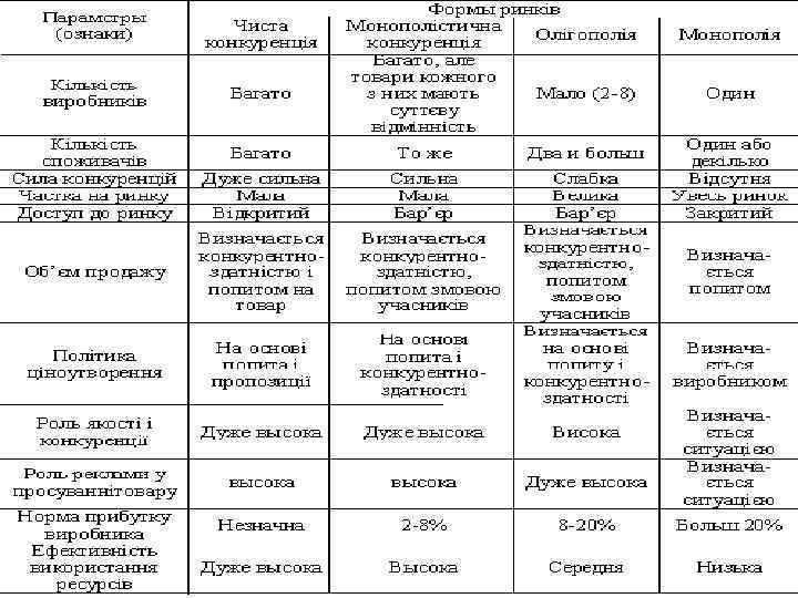 Ринок досконалої конкуренції Монополісти чна конкуренція Досконала конкуренція Ринкові структу ри Олігополія Монополія Недосконало конкурентні ринки