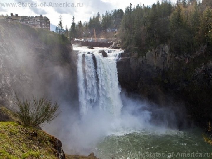 Водопад Сноквалми Ø Водопад Сноквалми (в оригинале «Snoqualmie Falls» ) находится на реке Сноквалми между городами Водопад и Сноквалми в американском штате Вашингтон. Его высота достигает восемьдесят два метра, что на целых тридцать метров выше знаменитого. Ниагарского водопада. Этот водопад считается одной из самых живописных и популярных достопримечательностей Вашингтона. Его ежегодно посещают более полутора миллионов посетителей. Водопад Сноквалми окружен двумя акрами (приблизительно восемь тысяч квадратных метров) живописного парка. Водопады, а также расположенная на месте падения воды большая электростанция признаны исторической достопримечательностью штата, как Инженерной ассоциацией США, так и Национальным комитетом исторических достопримечательностей.