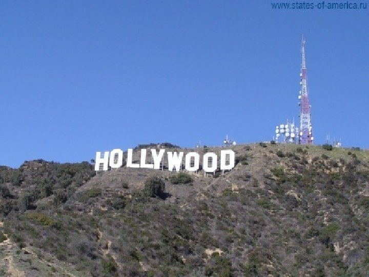 Голливуд Ø Каждый хочет своми глазами увидеть известные на весь мир огромные пятнадцати метровые буквы (на щитах) на холме, которые возвышаются над городом Лос. Анджелес, как его вечный символ. Их установили в 1923 г. , первоначально было написано Голливудлэнд (куда дели 4 последних буквы - тайна). Причем, невзирая на расхожее представление, с кино буквы не имеют ничего общего: надпись была водружена компанией, которая занималась недвижимостью, в рекламных целях.