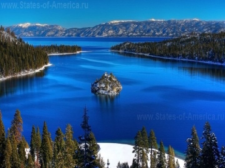 Озеро Тахо Ø Озеро Тахо расположено на границе американских штатов Невада и Калифорния. Оно считается вторым по глубине в Соединенных Штатах, шестнадцатым во всем мире, а также занимает пятое место на планете по средней глубине. Тахо представляет собой очень популярную круглогодичную курортную зону, расположенную на границе двух штатов. Забавным остается тот факт, что имя Тахо, официально, озеро получило только в сорок пятом году прошлого столетия.