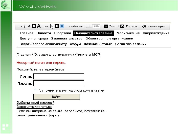 Версии сайтов для слабовидящих • • • http: //special. kremlin. ru/state/news Президент России http: //genproc. gov. ru/special/ Генеральная прокуратора Российской Федерации http: //www. fskn. gov. ru/special_fskn. shtml# Федеральная служба Российской Федерации по контролю за оборотом наркотиков http: //guo. abakan-rf. ru/about. html? changecss=1 Городское управление образования г. Абакана http: //школа 1. абакан. рф/56. html МБОУ СОШ № 1 г. Абакана http: //www. admsoln. ru/sv_index. php? cs=0 официальный сайт Администрации Рабочего посёлка Солнечный http: //s. mfc-nso. ru/ Многофункциональный центр организации предоставления государственных и муниципальных услуг Новосибирской области http: //www. r 54. fssprus. ru/ Федеральная служба судебных приставов г. Новосибирс http: //szn 24. ru: 16080/ Справочный портал для инвалидов. Региональная информационно - аналитическая система «Реабилитация» г. Красноярск