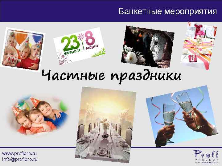 Банкетные мероприятия Частные праздники www. profipro. ru info@profipro. ru