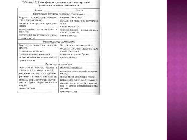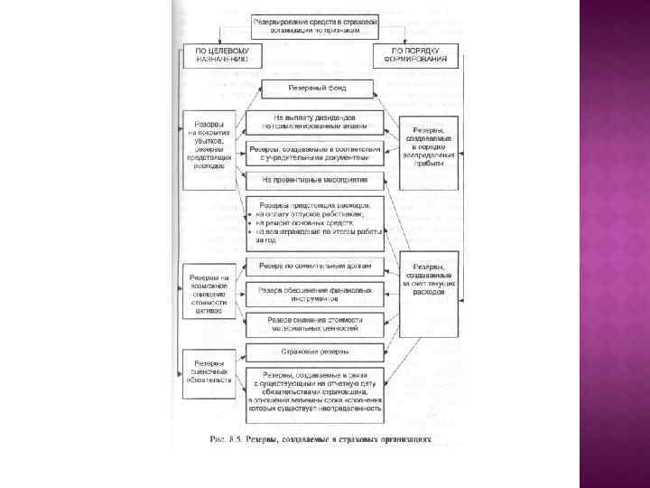 Доходы страховой организации. К доходам страховщика относятся: • страховые премии (взносы) по договорам страхования, сострахования и перестрахования; страховые премии (взносы) по договорам сострахования включаются в состав доходов страховщика (состраховщика) только в размере его доли стра ховой премии, установленной в договоре сострахования; • суммы уменьшения (возврата) страховых резервов, образо ванных в предыдущие отчетные периоды с учетом изменения доли перестраховщиков в страховых резервах; • вознаграждения и тантьемы по договорам перестрахования; • вознаграждения от страховщиков по договорам сострахования; • суммы возмещения перестраховщиками доли страховых вы плат по рискам, переданным в перестрахование; • суммы процентов на депо премий по рискам, принятым в пе рестрахование; • доходы от реализации перешедшего к страховщику в соответ ствии с действующим законодательством права требования страхователя (выгодоприобретателя) к лицам, ответственным за причиненный ущерб; • суммы санкций за неисполнение условий договоров страхования, признанные должником добровольно или по решению суда; • вознаграждения за оказание услуг страхового агента, страхо вого брокера; • вознаграждения, полученные страховщиком за оказание услуг сюрвейера; • суммы возврата части страховых премий (взносов) по догово рам перестрахования в случае их досрочного прекращения; • другие доходы, полученные при осуществлении страховой деятельности. Доходы страховых организаций можно классифицировать на две группы (рис. 8. 6). Источниками доходов по первой группе являются полученные страховые премии по договорам прямого страхования, суммы возврата страховых резервов, отчисленных, но не востребо ванных в предыдущие периоды, полученные из бюджета средства целевого финансирования на покрытие расходов по ведению дела страховщиком при проведении обязательного страхования. Комиссионные вознаграждения перестрахователя, тантьема и возмещение перестраховщиком приходящейся на него доли убытка после реализации страхового риска — это доходы, связанные с участием страховых организаций в перестраховании как перестрахова теля