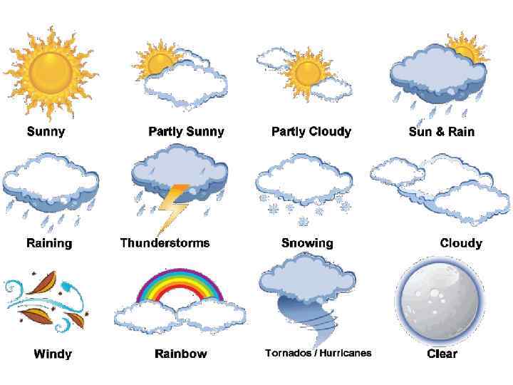 plus [plʌs] – плюс minus [‘mainəs] – минус above [ə’bʌv] – выше below [bi’lou] – ниже degree [di’gri: ] – градус zero [‘ziərou] – ноль Мы можем сказать так: The temperature is minus ten degrees. Температура минус десять градусов. Или так: The temperature is ten degrees below zero. Температура десять градусов ниже нуля. Первый вариант более характерен для американского английского, второй – для британского. Еще стоит помнить, что в США и Канаде применяется шкала Фаренгейта. Поэтому, разговаривая с американцем, стоит уточнить, какую шкалу вы имеете в виду: The temperature is plus fifteen degrees Celsius. Температура плюс пятнадцать градусов по Цельсию. Если вы не знаете точную температуру воздуха, можно сказать так: Today is about ten degrees. Сегодня около дести градусов тепла.