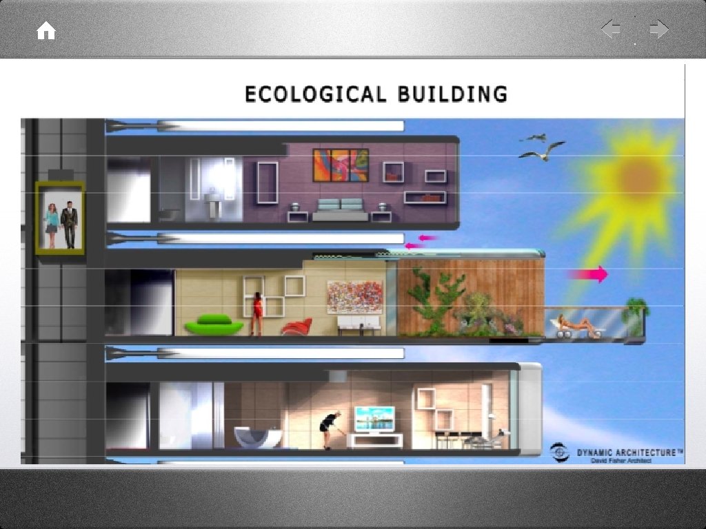 ARCHITECTURE IS FUNCTIONALITY • • For David Fisher Architecture is the space for living and the life of the people must not be conditioned by an architect’s extravagance. Infinity Design gives puts a strong focus on the flexibility of the space as life, architecture must change together with the needs of the people and the changes of the environmental conditions.