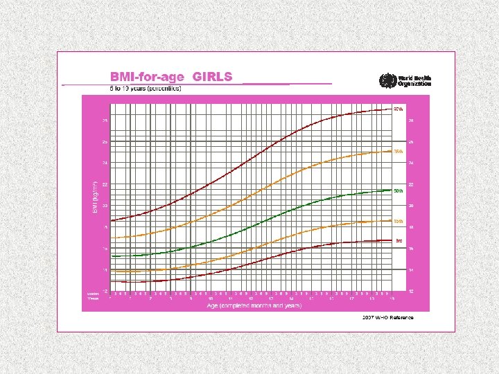 SÍNDROME METABÓLICA NA INF NCIA E ADOLESCÊNCIA- IMC NCHS- 2000: Sobrepeso: IMC > p 85 Obesidade: IMC > p 95 A partir de 2009, novas curvas - OMS Sobrepeso: IMC > p 95 Obesidade: IMC > p 97 Obesidade grave: IMC > p 99 O IMC mostra boa correlação com obesidade grave na fase adulta e SM: Bogalusa, J Pediatr. Jan 2007: 150(1): 12 -17 O IMC parece representar fator independente de espessamento médio-intimal carotídeo na idade adulta: Bogalusa, Int J Obes (Lond). May 2008: 32(5): 749 -56