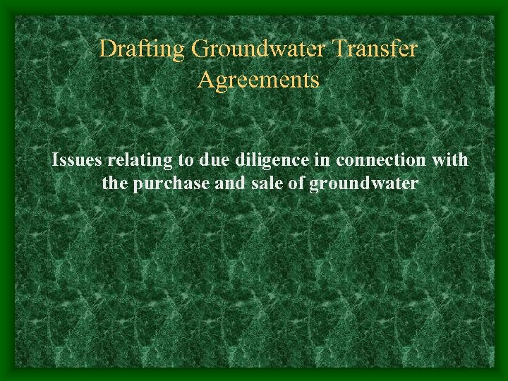 Drafting Groundwater Transfer Agreements Issues relating to due diligence in connection with the purchase and sale of groundwater
