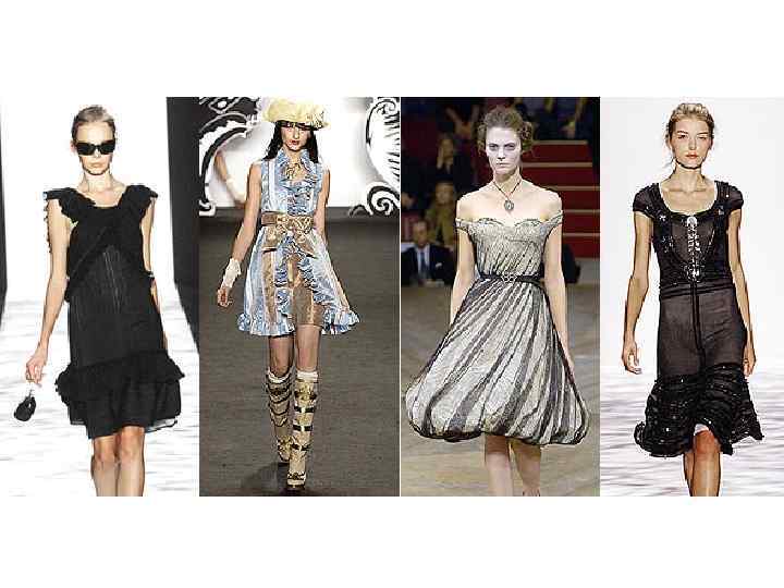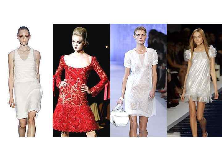 В вечерней моде известно три основных силуэта платья: • - облегающий силуэт - узкий, подчеркивающий фигуру. Высокие и стройные женщины, как правило, выбирают именно его. Приемлем и для миниатюрных женщин. • - "принцес" - силуэт делает фигуру стройной за счет рельефных швов и расширения к низу. Его плавные линии подходят большинству женщин. • - прилегающий лиф и пышная юбка - этот силуэт подчеркивает стройность фигуры, ее женственность. Очень популярен в свадебной моде. Полным девушкам - противопоказан. Определяющие детали: вырез горловины, тип рукава и линия талии. Именно эти детали сбалансируют вашу фигуру.