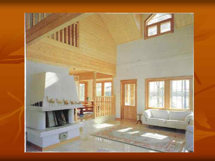 СВОЙСТВА ДРЕВЕСИНЫ ПОЛОЖИТЕЛЬНЫЕ Сравнительная легкость при удовлетворительной и высокой прочности ср ~ 600 кг/м 3 Rсж ~ 45 Мпа Rр ~ 120 Мпа ККК ~ 0, 8 (у стали ~ 0, 5) Оригинальные эстетические характеристики ( «положительное» восприятие – «теплота, комфорт, уют» ) Уникальная физическая сущность – положительное влияние на физиологию