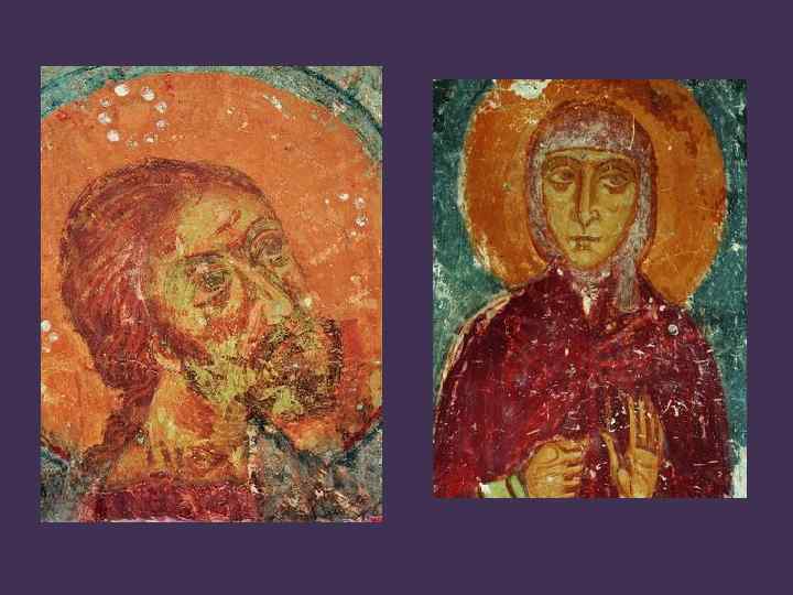 Праведный Симеон Богоприимец и пророчица Анна. Деталь композиции Сретение на южном алтарном столбе