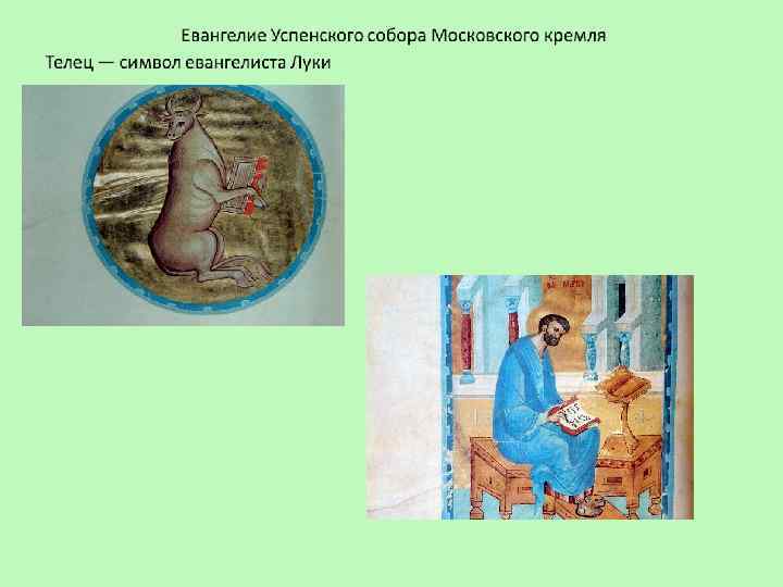 Евангелие Хитрово - это название рукопись получила по имени боярина, которому она принадлежала в XVII веке. Хитрово Богдан Матвеевич Телец — символ евангелиста Луки Ангел — символ евангелиста Матфея Орел — cимвол евангелиста Иоанна Богослова Телец — символ евангелиста Луки