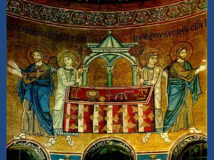Богоматерь Оранта Стена Нерушимая • Изображение Богоматери с воздетыми в молении руками и без Младенца называется «Оранта» (от лат. orans — молящаяся). «Оранта» высотой 5, 45 метра останавливает взор каждого входящего в собор и воспринимается как главное, доминирующее изображение во всем храме. Взывающая Богоматерь подняла руки в молитве к Спасу Вседержителю, изображение которого расположено в зеркале центрального купола.