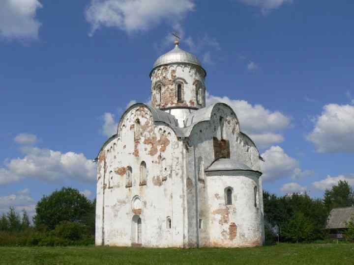 Церковь Николы на Липне • С XIII века храмовое строительство полностью перешло от князей к новгородцам. Церковные здания возводились на средства бояр, купеческих объединений и «концов» – районов Новгорода. Возникают замечательные образцы древнерусского зодчества