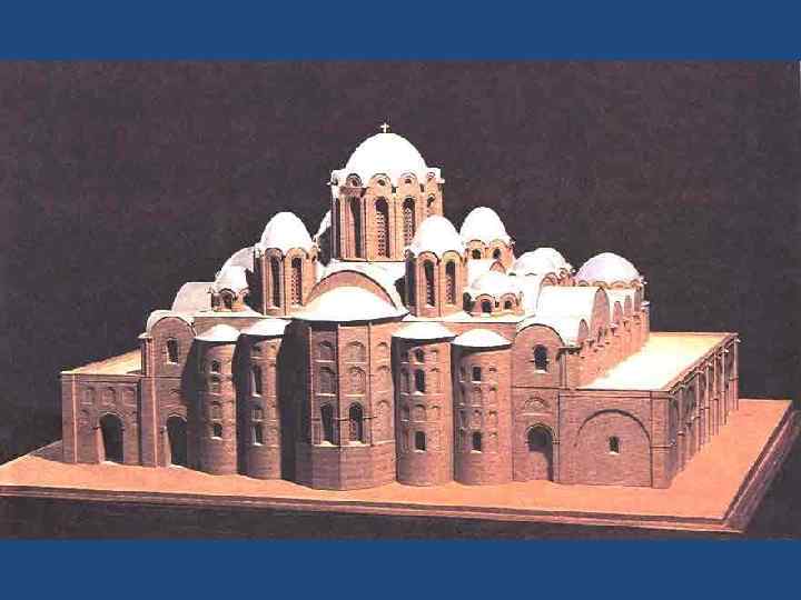 Архитектура • В XI столетии в только что крещеной стране строится множество храмов. Для их возведения приглашают византийских мастеров. • Десятинная церковь (церковь Успения Богоматери) была возведена Владимиром в том месте, где находился языческий идол – Перун в 991 – 996 годах. На постройку церкви была выделена десятая часть княжеских доходов – отсюда ее название. Византийские зодчие, строившие церковь, принесли с собой крестово -купольную систему храма.