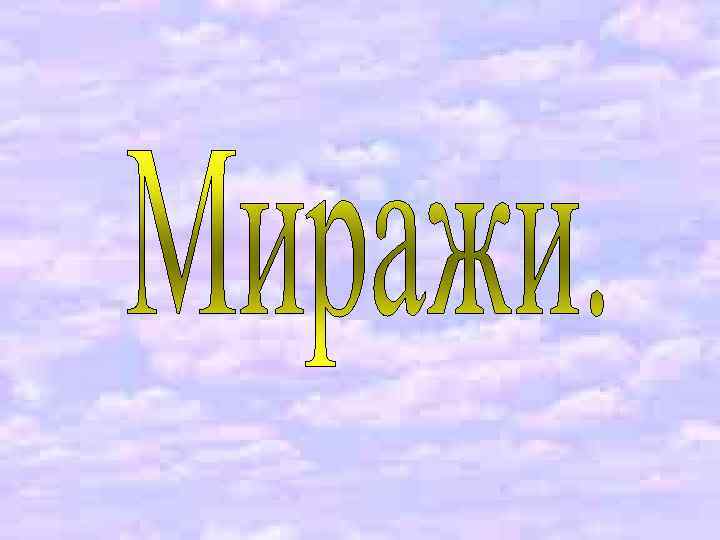Атмосферные миражи делятся на три класса: • озерный или нижние • верхние (возникают прямо в небе) или миражи дальнего видения • боковые • Фата –Моргана • Полярное сияние • Миражи - призраки