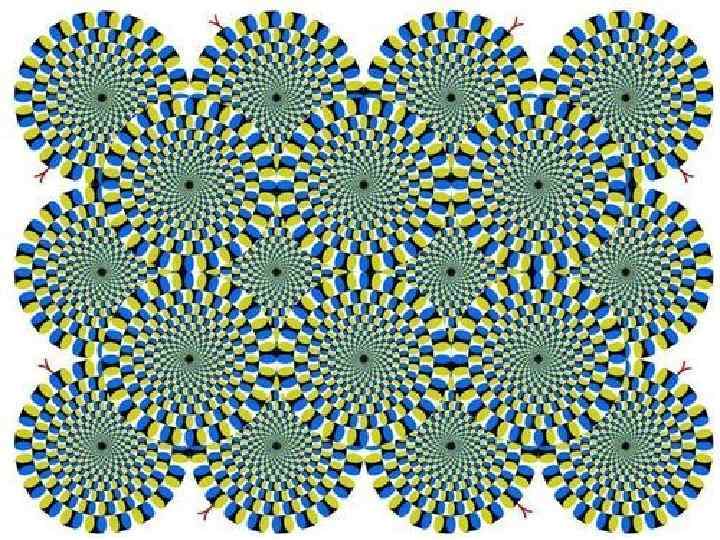 • Геометрические • Бинокулярное • Иллюзии, связанные с когнитивными конурами • Иллюзии, связанные со сменой ориентации • Динамически