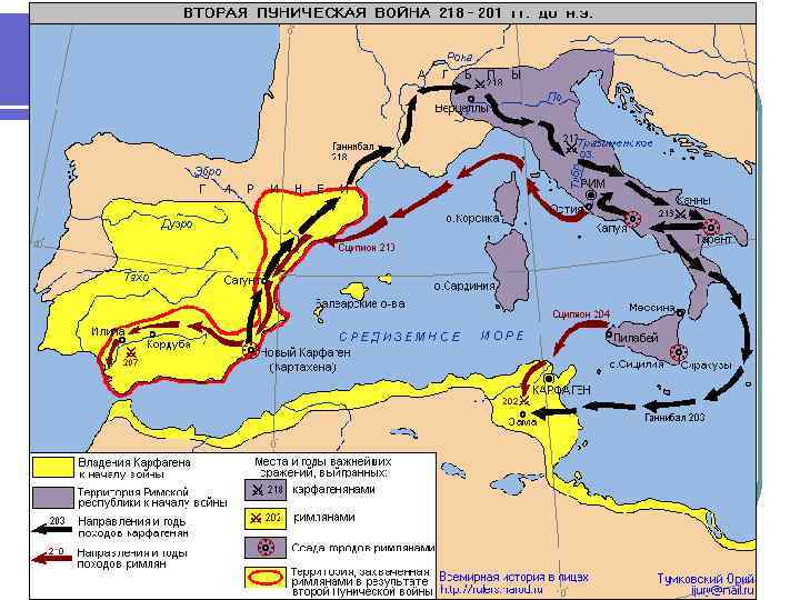 Вторая Пуническая война (218 -201 гг. до н. э. ) Карфагенский полководец Ганнибал, перейдя Альпы, вторгся в Италию и нанес поражения римлянам у Тразименского озера и в битве при Каннах (216 г. до н. э. ). l Затем театр военных действий был перенесен в Африку, где Ганнибал потерпел единственное поражение в битве при Заме. В итоге Карфаген лишился своих владений в Испании, выплатил контрибуцию. l