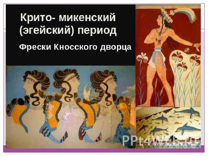 Эгейский период (III—II тыс. до н. э. ) Искусство этого периода характеризует высокое мастерство художников и зодчих Крита. Благодаря раскопкам А. Эванса на рубеже XIX—XX веков была открыта удивительная по красоте художественная культура Крита, названная им минойской. Ансамбли дворцов, росписи стен (фрески), керамика впечатляют свободной живописностью, фантазией, высоким художественным уровнем исполнения. Кнооский Дворец представлял собой уникальный памятник художественной культуры Крита.