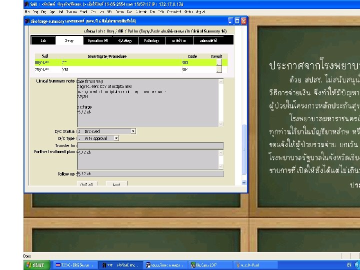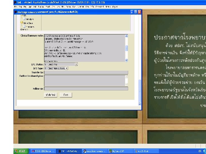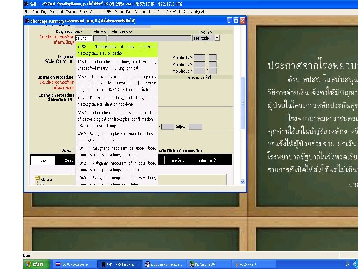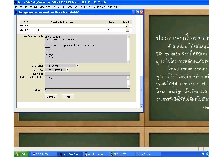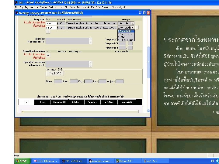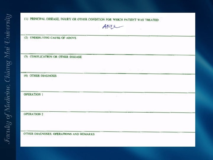 สงทแพทยไมควรทำ • เขยนดวยลายมอทอานยาก • เขยนการวนจฉยหลกมากกวา 1 โรค • เขยนโรคแทรกเปนการวนจฉยหลกหรอการ วนจฉยรวม • เขยนอาการหรออาการแสดงเปนการวนจฉย หลก ยกเวนกรณทวนจฉยไมไดวาเปนโรคอ ะไร • เขยนคำวนจฉยกำกวม • เขยนคำยอทไมเปนสากล