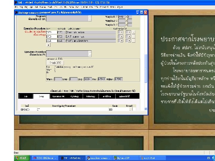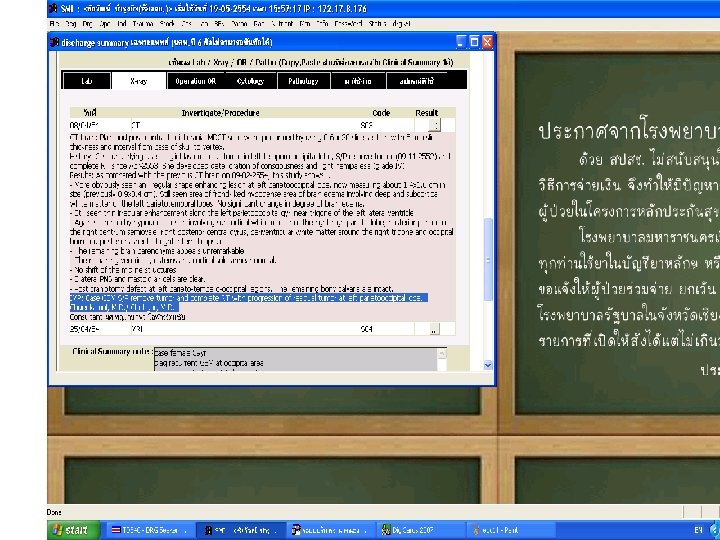 ระดบคณภาพขอมล บนทกการผาตด procedures Core ปจจยสงผลตอคณภาพขอมล ความร ความชำนาญ ความมนใจ ความละเอยดในงาน สภาพแวดลอมในงาน -Vagotomy, Pyloroplasty -Decortication of lung -Diskectomy L 4, 5 Drainage subdural hematoma คำใชสำหรบ set ผาตด -Explore laparotomy -Craniotomy -Thoracotomy -Laminectomy