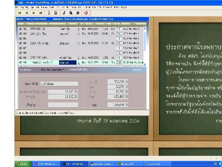 Case hemodialysis คารกษารวม 918, 317 เบก DRG 186, 290 ขาดทน 679, 780 สาเหต HD x 30ครง 105, 000 Albumin 69, 156 Eprex 63, 570 Antibiotic 87, 486