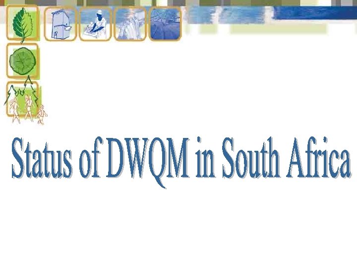 The Context • Globally, focus on water crises related to quantity, however recently, with increasing environmental degradation, there has been an acknowledgement that quality is central to the “water crisis” • Current focus in SA is ensuring access to safe drinking water by all by 2008 • South Africa has set ambitious targets- ASGISA 6% economic growth and this will have a bearing on both quantity and quality of water • Other sectors, e. g. DOA, DALA and DOH have set targets that affect water. DOA’s target is to increase productivity of sector by 10 -15%, given that water quality is linked to sustainable food production, what should be our response? • It is OUR responsibility that water quality aspects are not lost in all the above objectives