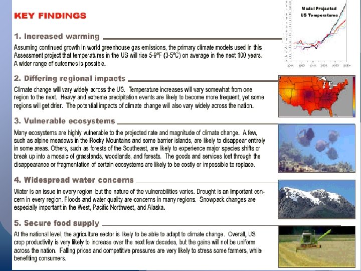 Challenges • Ecosystem response to multiple stresses, climate change in a broader context • Degree to which CO 2 fertilization operates • Dependencies of impacts on particular CO 2 concentrations • Costs and effectiveness of adaptation strategies • Interaction of domestic and international effects • Linkages to other issues, especially losses of biological diversity