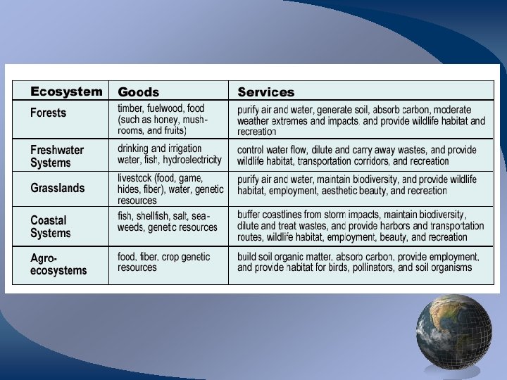 So What? • Why should we care? • Ethical concerns for conservation and preservation of natural heritage • Practical concerns for delivery of ecosystem services: fiber, food, water, soil fertility, atmospheric composition and climate, biological diversity • Both priced and unpriced services