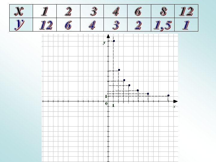 Завдання № 3 Задайте функцію оберненої пропорційності, якщо її графік проходить через точку: ( 1; 3 ) х у