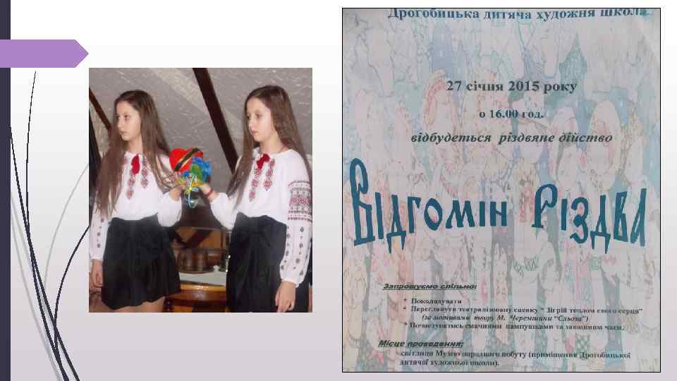 Перспективи навчання у художній школі | Дрогобицька міська рада http: //drohobych-rada. gov. ua/perspektyvy -navchannya-u-hudozhnij-shkoli/ Нові мольберти від Миколая: юні дрогобицькі малярі отримали чудові дарунки http: //maydan. drohobych. net/? p=48286 Висвітлення події із життя художньої школи у місцевій пресі
