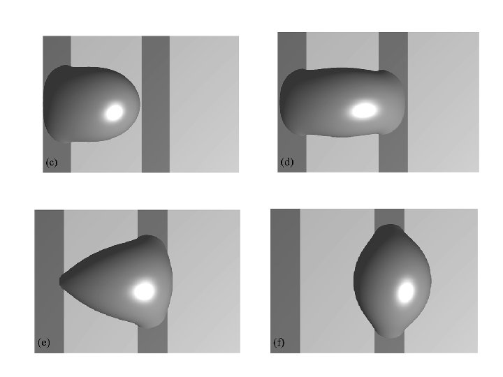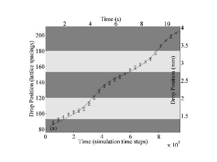 LB simulations on substrate 4 • Two final (meta-)stable state observed depending on the point of impact. • Dynamics of the drop formation traced. • Quantitative agreement with experiment. Simulation vs experiments Evolution of the contact line