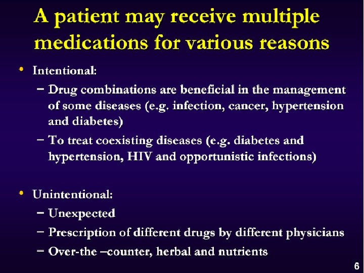 Contribution of Drug Interactions to the Overall Burden of ADRs Drug interactions represent 3– 5 % of in-hospital ADRs Drug interactions are an important contributor to number of ER visits and hospital admissions Leape LL et al. JAMA 1995; 274(1): 35– 43 Raschetti R et al. Eur J Clin Pharmacol 1999; 54(12): 959– 963