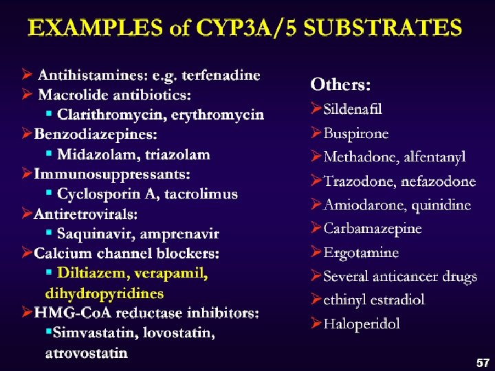 DRUGS THAT INTERACT WITH GRAPE FRUIT JUICE Benzodiazepines : midazolam, diazepam, triazolam Cytotoxic drugs : cyclosporine, tacrolimus, sirolimus Dyhydropyridine Calcium-channel blockers : amlodipine, felodipine, nifedipine, nisoldipine, nitrendipine, verapamil Theopylline 17β-estradiol Statins : simvastatin, lorvastatin, atorvastatin Antidepressants : sertraline, buspirone, clomipramine Antiepileptics : carbamazepine Antiretroviral agents : saquinavir, indinavir Antiarrhythmics : amiodarone Misce : methadone, sildenafil GFJ increases bioavailability for felodipine by 200%, nifedipine 57% and verapamil by 36%. Inhibition of P-glycoprotein increases bioavailability of drugs. GFJ : enzyme and P-glycoprotein inhibitor South Med J. 2009; 102(3): 308 -309.