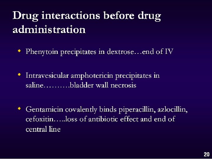In Vitro drug interactions Drugs Interactant Result Ceftriaxone sodium Lactated Ringer's solution Ca-Ceftriaxone precipitate Daptomycin Dextrose solution Daptomycin precipitate Daptomycin 0. 9% saline solution Lactated Ringer's solution Compatible Piperacillin-tazobactam Acyclovir Particle formation Amphotericin B Flocculent Mitomycin Blue colour Cefepime degrades up to 25% Theophylline David W. Newton (2009) Am J Health-System Pharm. 66(4): 348 -357 Thilo Bertsche et al (2008) Am J Health-Syst Pharm. 65(19): 1834 -1840