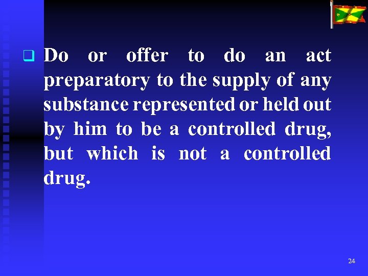 q Do or offer to do an act preparatory to the supply of any substance represented or held out by him to be a controlled drug, but which is not a controlled drug. 24