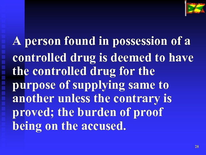 A person found in possession of a controlled drug is deemed to have the controlled drug for the purpose of supplying same to another unless the contrary is proved; the burden of proof being on the accused. 28